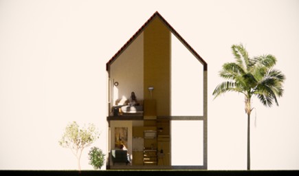 Initially designed with a compact layout, the house can expand from 1 bedspace to up to 5, ensuring comfort even as the family grows. The expandable strategy allows homeowners to build progressively without compromising spatial quality.